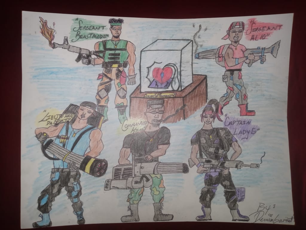 On September 19,2040 a worldwide warning went out with a race against time to find the stolen heart -shaped locket. It was not just any locket, it was “The Locket of Humanity”. But who would go on this mission to find the locket of humanity to stop the world’s dystopia? One brave commander and his team of soldiers volunteered to go on this mission. Commander King, Lieutenant Da Goat, Captain Lady G and Sergeant Beast Mode headed to Mount Savior to set up the heist to get the Locket of humanity back.