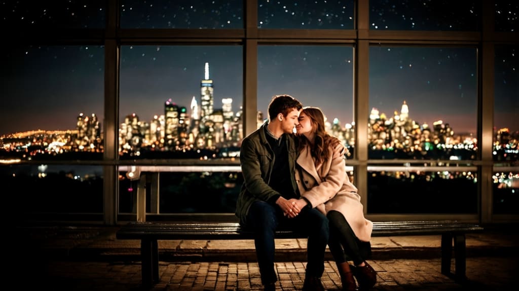 Amelia: (Jittery, next to Ethan sitting in a bench on top of the city, staring outside) "Ethan... I want to tell you something."
