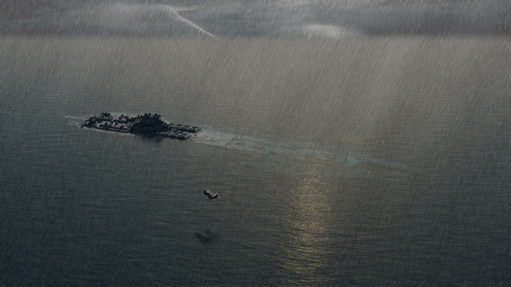 There, a flight deck that should never have touched an atmosphere felt the kiss of rain, while waves slapped against the hull that should never have seen an ocean. So, it did not stand in contrast that the gunship whose engines still cooled, sat on a landing pad to which it did not belong.