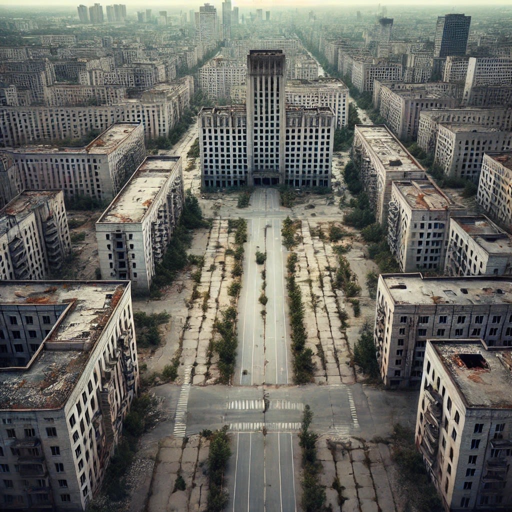 The air was thick, almost suffocating, carrying a metallic tang that clung to his tongue. The streets were unnaturally silent, as if the city itself was holding its breath. The buildings leaned precariously, their windows shattered and dark, like hollow eyes watching his every move. The flickering streetlights cast long, distorted shadows that seemed to stretch and twist, reaching for him.