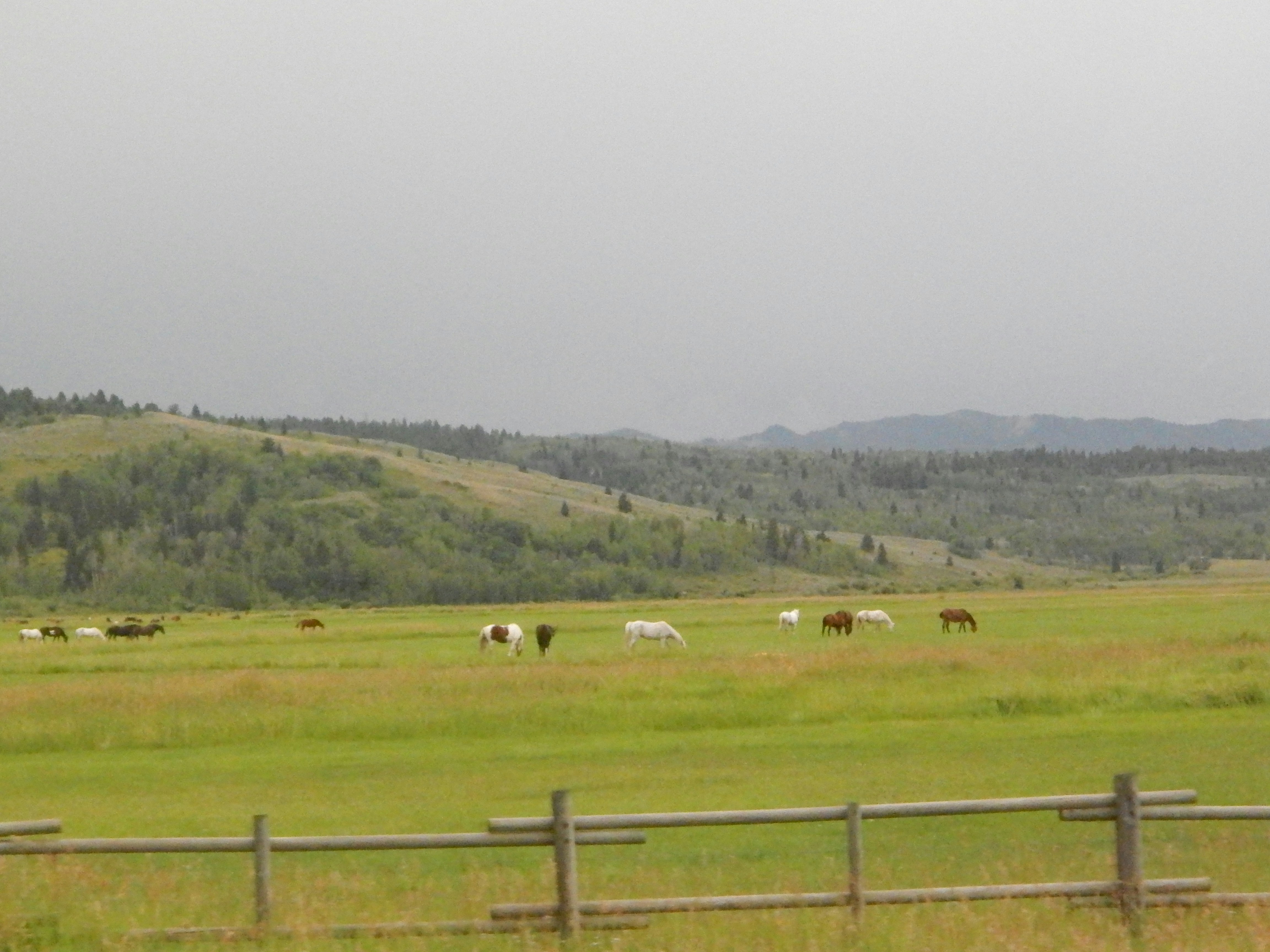 The (man?) hurried then, gliding up to the crest of the hill (he?) was climbing. Spread out in the valley below were--thousands?-of horses.