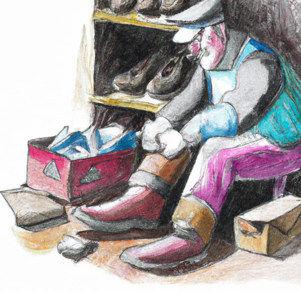 Once upon a time, there was a master shoemaker named Michael. He had been honing his craft for decades and was known throughout the land for his exceptional skill and artistry. He had a small shop in a quiet corner of the city, where he spent his days crafting shoes that were not only functional but also works of art. One day, a postman by the name of Tom came to Michael's shop, looking for a new pair of shoes. Tom explained that he walked many miles every day, delivering mail to the residents of the city and that his current shoes were worn out and causing him pain. Michael listened attentively and offered to make him a pair of shoes that would be comfortable and durable.
