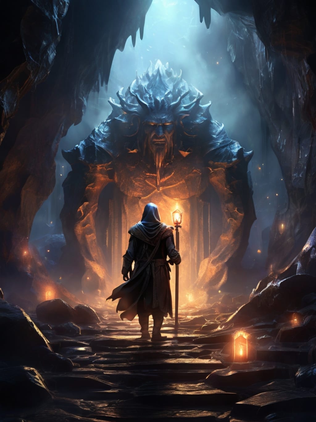 Armed with little more than a lantern and his wits, Aiden ventured into the darkness, his path illuminated by the soft glow of his light. But as he delved deeper into the caverns, he soon discovered that he was not alone. For the caverns were home to a race of fearsome giants, ancient guardians who jealously protected the secrets hidden within their domain.