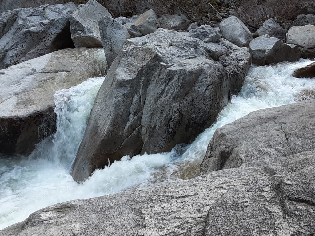 Sara suddenly shivered. It was starting to get cold. At noon? In summer? In any case she needed to find a way out. If she had to call for help then the secret location of her perfect spot would be revealed. Sara shivered again, this time in rage. She knew it would hurt like the dickens, but she had to pull her foot out. She scooted her butt up a little on the rocks and planted her free foot. She started to cry, tears of anger. Gritted her teeth, and pulled, fast and hard. The creek echoed with her pain for a moment, then quiet. And the tears came again. But she was free. And then there was Cobb. From nowhere, chewing a piece of honeysuckle and staring down at her in dismay.