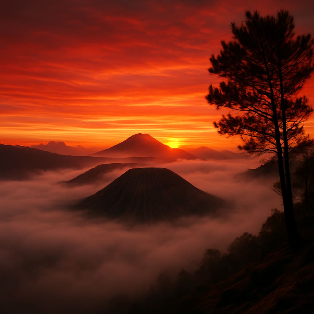The villagers of Bromo awoke to a sky ablaze. Crimson bled into gold, and gold into fire — a sunrise that seemed to last far too long. Hours passed, and the sun stood still, stubborn above the volcanic ridges like a silent sentinel.