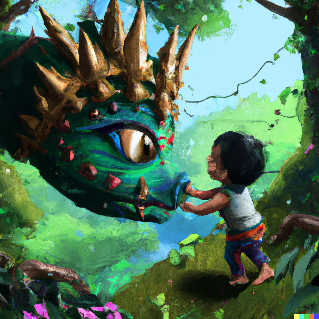 The boy hiccupped, and gradually quieted. He took the proffered green scale with both hands, and turned it around and around, admiring its reflectiveness. A smile slowly spread across his cheeks as he gripped it and waved it around. He raised it up with one hand, as if to show off his strength, and beamed at Jeremy. Jeremy couldn’t help but smile.