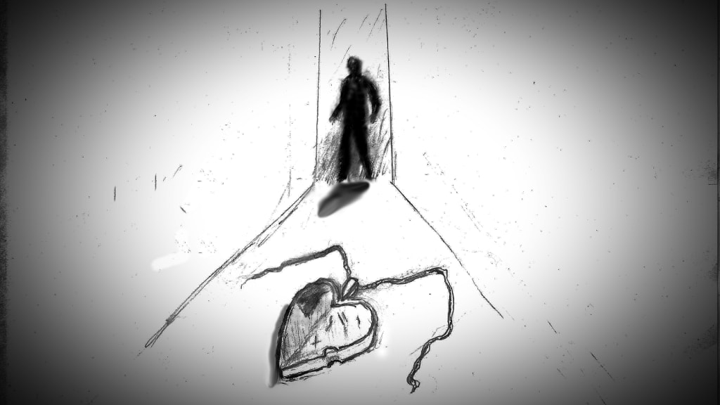 When I crossed the threshold of my apartment I checked for my pistol hidden in the red book on the shelf. Still there, still loaded. I cleared the kitchen, living room and lavatory. I pushed through the doorway of my bedroom slowly. The window was cracked open with some water splashing in. Maybe I had left it open but I cleared the room anyway. Nothing in the closet. I scanned the room. My nightstand was on the other side of the room and resting on top in a small puddle was the heart-shaped locket. I felt the pressure of tears filling my eyes as I swung the pistol quickly to scan the room. No one was there as I backed toward the door. I called out, “where the hell are you!?” I heard the voice behind me just over my shoulder, “Here.” I turned to fire but he pushed the weapon up as I fired. He knocked me to the ground while disarming me. Coughing, I pleaded.” I gave it back, I gave it back he stood there and devoid of emotion said, “I know.’ He raised the pistol and I closed my eyes. He fired. My ears rang from the shot. I didn’t open my eyes until the ringing stopped. Looking to my left and there was a smoking hole in the chair next to me. I scanned upward and he was gone. My pistol was on the floor, the locket was gone. I sat in the corner of my room the rest of the night, pistol in hand, sobbing and sweating.