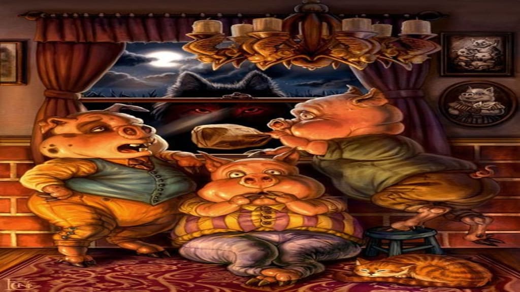 Meanwhile, a notorious wolf named Frederick resided deep within the forest, renowned for his cunning and appetite for mischief. One day, as he was prowling through the valley, Frederick noticed the three young pigs' houses. He saw an opportunity for a tantalizing feast.