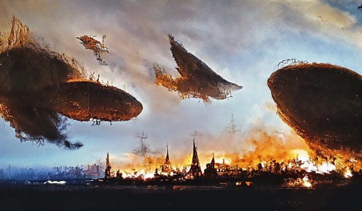 Eventually humans could not stay content with what they had built. Obsession with power and greed overtook the nations of humanity and they would wage terrible wars against each other. Using their own weapons, machines, and airships against one another. The blood of their brethren bathed these ancient lands. Their technology escalating for one purpose now. To destroy each other.