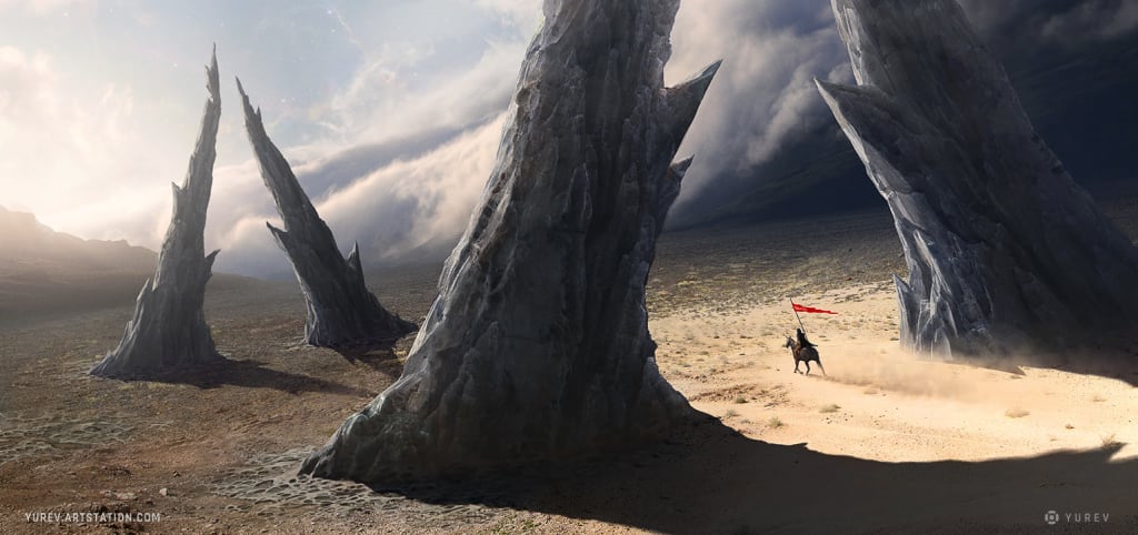 Engines of war, weapons, armor, and the bodies of the fallen were strewn across the many miles of the Valley. The Valley was now renamed the Valley of Mourn, as the spikes of rock that were once contained within the Mourning Peaks were somehow growing into the Valley itself the longer the fighting went on. No one knew how this happened, but it seemed that eventually, the spikes would engulf the entire Valley, cutting off both sides from marching on the other. Some saw this as a blessing, an end to the endless fighting that had seen no end in sight, but as the battles continued to rage, these spikes continued to grow and began to spread to the east and the west, even beginning to enter into the plains on both sides. The Mourning Peaks were growing.