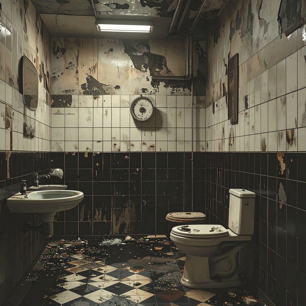 I stare at my reflection in the dingy bathroom, water dripping from one of the faucets. The white tile is smeared with dirt and God knows what. But it's the only quiet place to think.
