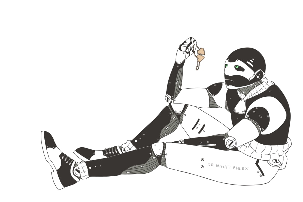 The low blue light strips along my ceiling change to red the instant I say it. I immediately hide the locket beneath my charging station as two R3-KLM units burst through my charge-room door. They latch onto my arms and my body is no longer able to move. I can feel their connectors attach to me, draining me slowly of battery. With no explanation, an entrance, previously unknown to me, opens up in the floor of my small living room and the shiny black R3-KLM units drag me beneath the floor into a corridor.
