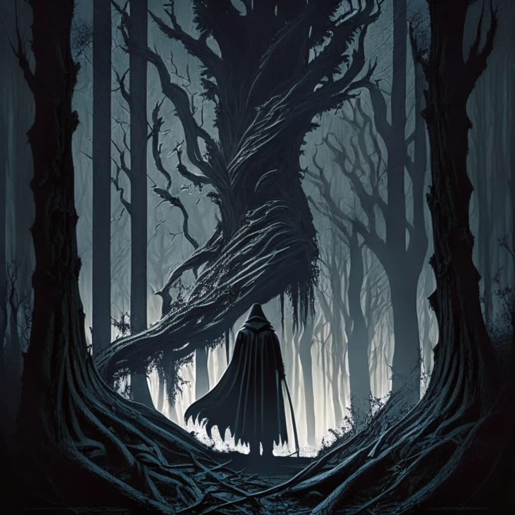 The Harbinger stood before Emily, its presence suffocating and its gaze piercing through her very soul. It was a tall, gaunt figure draped in tattered black robes, its skeletal hands reaching out hungrily. The air grew thick with malevolence, and Emily's heart pounded in her chest.