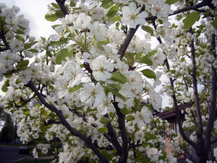In a blink he crossed the pond. Grasped a blossom, and bowed his head. Deeper greens flowed around his hand for a moment. Then he turned, and appeared at her side again. Took her limp hand in his, and placed a perfectly ripe pear in it.