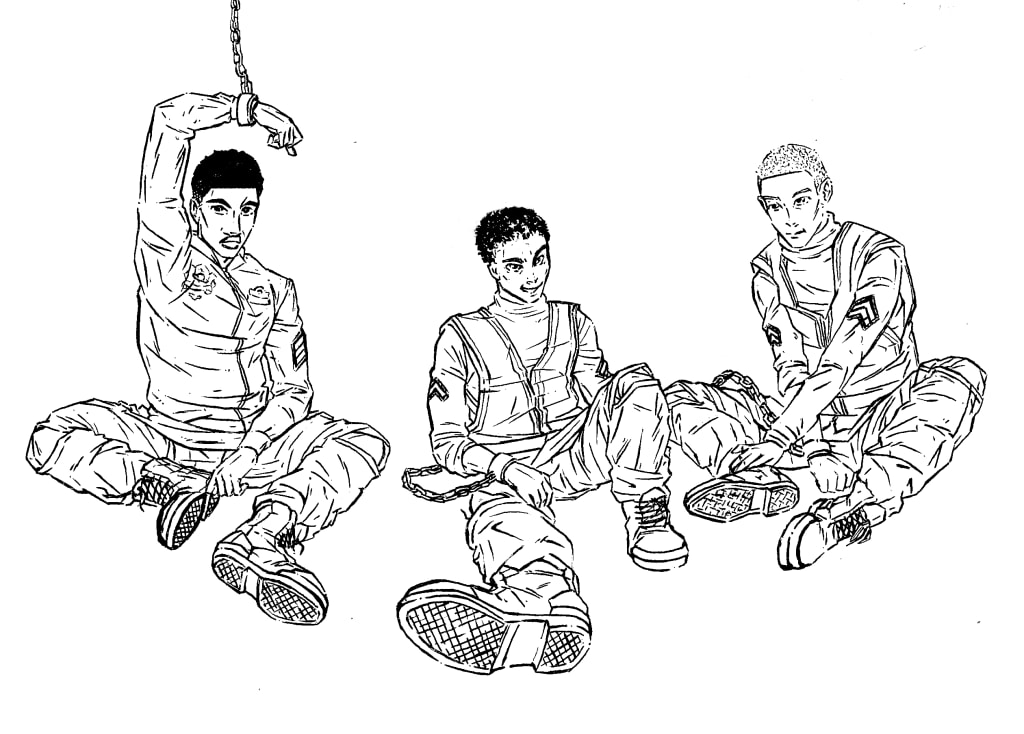 “A-am I…what the h-ugh, ugh...the hell happened?” I thought to myself, curled in the corner of a cool dimly lit room. My surroundings murky, my gaze an impervious haze. “Am I still alive?” I asked aloud, as the stench of my breath hit my nostrils, confirming my query. My attempts to find a more comfortable position on the hardened floor alerted me that my body was bruised all over, mostly in my chest. I can feel my heart throbbing, echoing off a piece of metal attached to, and constraining my wrist. Wait…wrist!? As I try to release myself, I see not only am I shackled, but there are two other figures in this cell with me. I recognize these figures, though my sight is still blurred, these men I have known throughout my years here. Private First-Class Dewy Anson, and Lance Corporal Tosin Parsley, we work on Deck 7, engineering; these are the men are under my command.