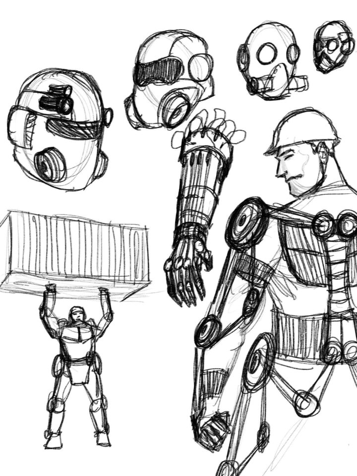 We used to have an old Exosuit type of machine. We could move anything with it. We saw some images of men working in these things and they were much bigger and could lift heavier stuff. They remind me of characters in comic books!
