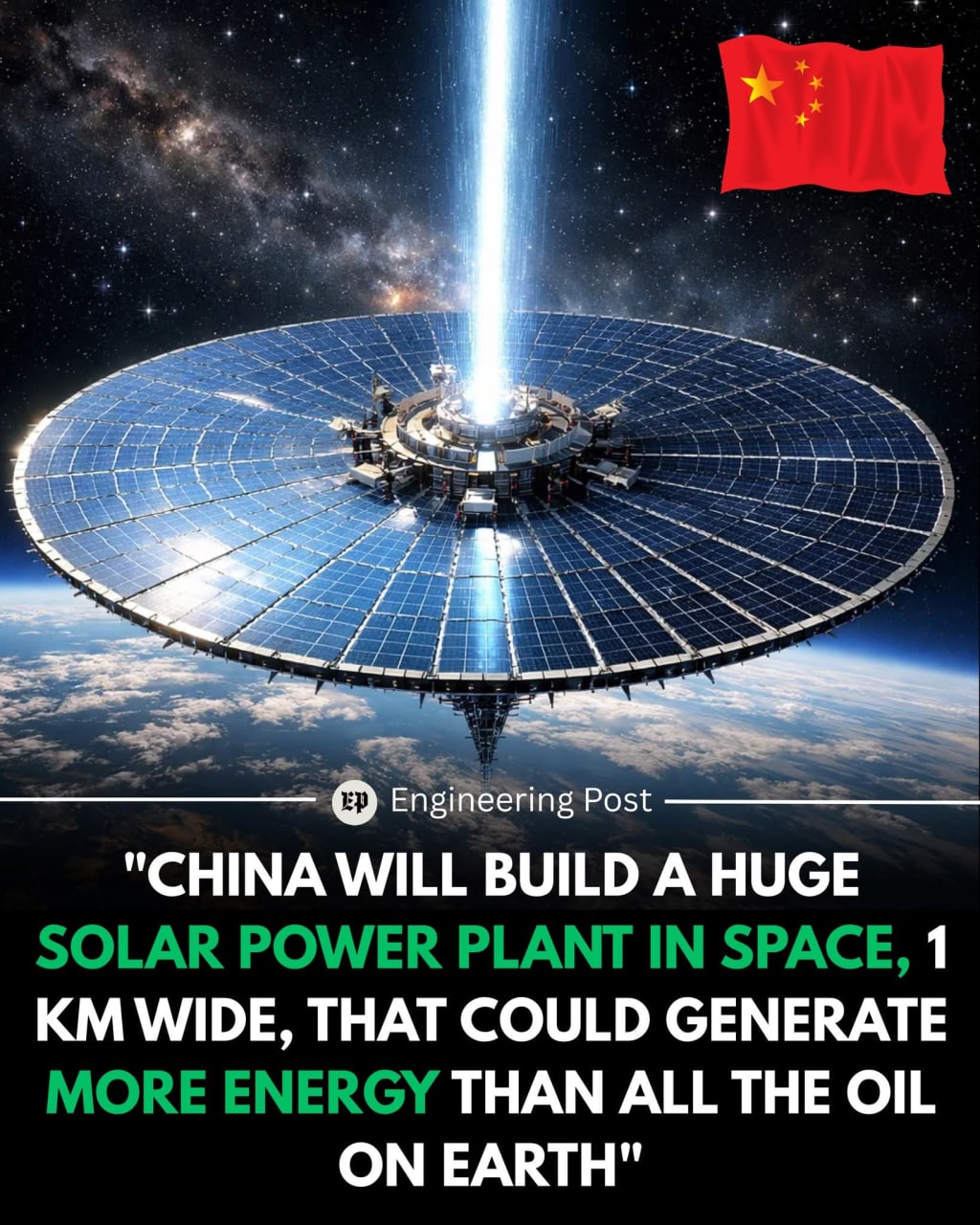 "CHINA WILL BUILD A HUGE SOLAR POWER PLANT IN SPACE, 1 KM WIDE, THAT COULD GENERATE MORE ENERGY THAN ALL THE OIL ON EARTH"