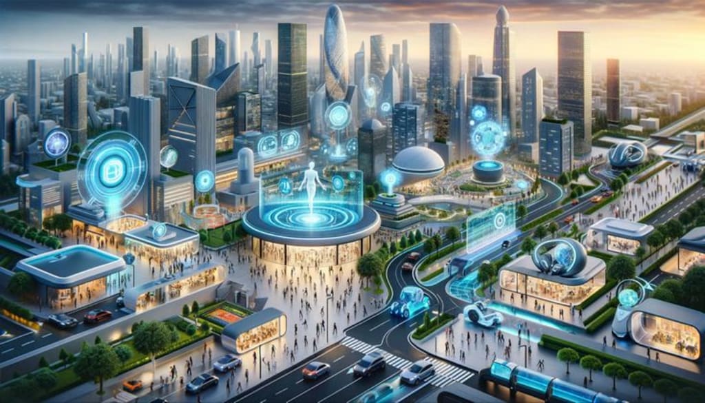 One evening, Aria stood on her apartment balcony, looking at the glowing city below. She watched people walking with smart devices, robots moving in sync with traffic, and holograms dancing in the night air. And she smiled, knowing that the future was not only about machines—it was about using them to make life richer, more connected, and more meaningful.