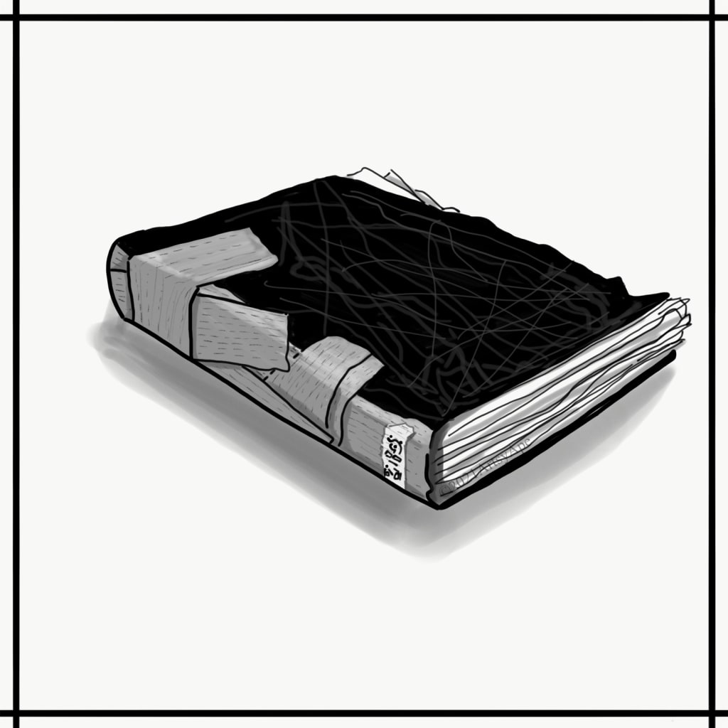 “Sorry hang on let me get my earbuds I don’t think I heard you right,” I say. I plop my bag on the orange plastic seat to my left and unzip my bag to dig out my headphones, only to touch the sticky duct taped edge of what looks to be a battered little black book.