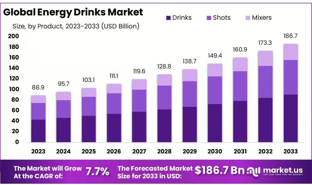 Energy Drinks Market Worth USD 186.7 Billion by 2033 at 7.7% CAGR