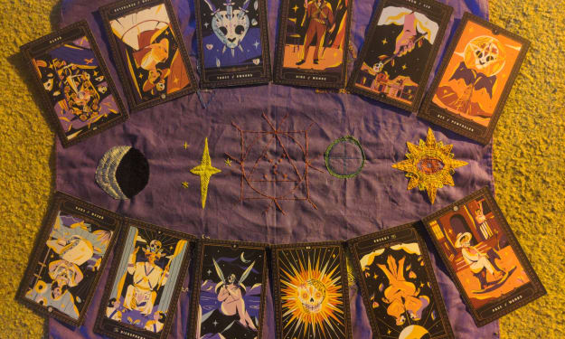The categorization of the twelve signs of the zodiac is something that would likely take an entire post to thoroughly explain, so I'll keep it short and only quickly go over what "cardinal", "fixed", and "mutable" means. A Cardinal sign is the sign that occurs first in its respective season, thus effectively 'kicking off' the season. A Fixed sign is the sign that sits directly in the middle of its season, at the season's peak. A Mutable sign is the sign at the end of the season, wrapping it up, and making way for the next season to be ushered in. In this spread, as my altar cloth has a designated quadrant for each element, I organize the signs in that order - cardinal, fixed, and mutable - of each respective element. This week, the cards themselves fell thus: