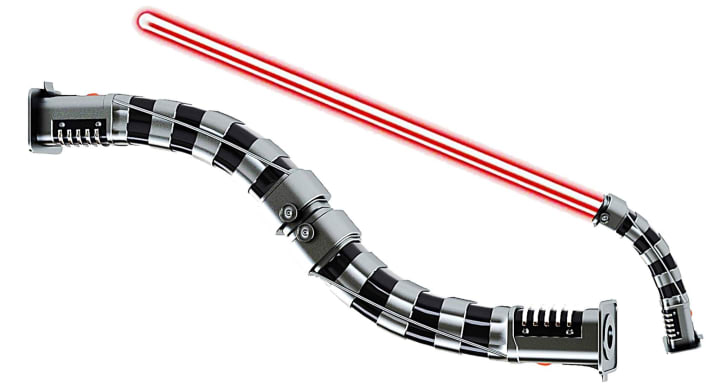 In the Phantom Menace, we are treated with a new design of lightsaber: that of Darth Maul's red, double-bladed lightsaber. Although still essentially a metal tube, the fact that it has two blades changes the fighting style completely. Actually comprised of two separate lightsabers welded together, Maul's lightsaber is a fearsome weapon and one that has grown to be a fan favourite and iconic of the Sith.