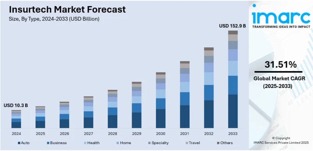 The insurtech sector is experiencing explosive growth as digital technologies transform how insurance companies operate and engage with customers. Driven by artificial intelligence, blockchain innovation, and shifting consumer expectations, the industry is moving toward more personalized, efficient, and transparent insurance solutions. According to IMARC Group's latest data, the global insurtech market size was valued at USD 10.3 Billion in 2025. Looking forward, IMARC Group estimates the market to reach USD 152.9 Billion by 2034, exhibiting a CAGR of 31.51% from 2026-2034.