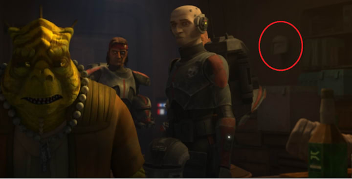 Let us now rewind back to the initial meeting with Cid in her storeroom. The Bad Batch wanted more information on their unknown pursuer, whom we all know as Fennec Shand. Most of us missed what was in the background as Cid asked the clones what they would do for her in exchange for information on the bounty hunter.