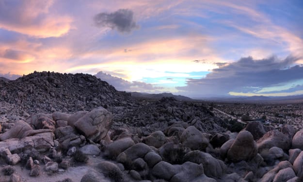 THE JUNCTION A million shades of pink, purple, and orange cascaded across the sky as the last sliver of sun was completely swallowed up by the rocky horizon. Darkness would come quickly, but she knew the way back from her spot, even in pitch black. This is where she went to think, and today her mind felt heavily plagued. Becca sat on top of a giant, gritty boulder overlooking a vast rocky landscape dotted with Joshua Trees. There is only one area these spiky desert trees grow, and it’s the place she has called home her entire life.