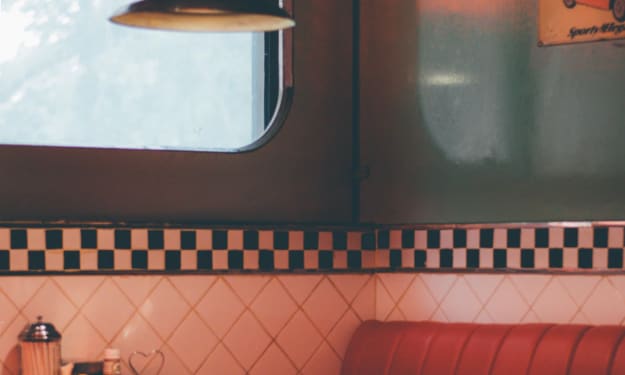 I woke to the sounds of clanking dishes and the smell of greasy food. When I opened my eyes I could see that I was sitting in a corner booth in the back of a diner. How did I get here, I pondered? I rubbed the haziness from my eyes and when I opened them again a pretty young waitress was tapping her pen against a pad of paper.