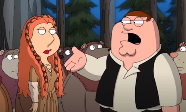 Picture it: May 22, 2011, Family Guy concluded its ninth season with "It’s a Trap!," the final installment of the series’ Star Wars parody trilogy: Laugh It Up, Fuzzball. In this double-episode, Han Solo (Peter Griffin) questions Leia (Lois Griffin) about her change in appearance, since they had last seen each other.