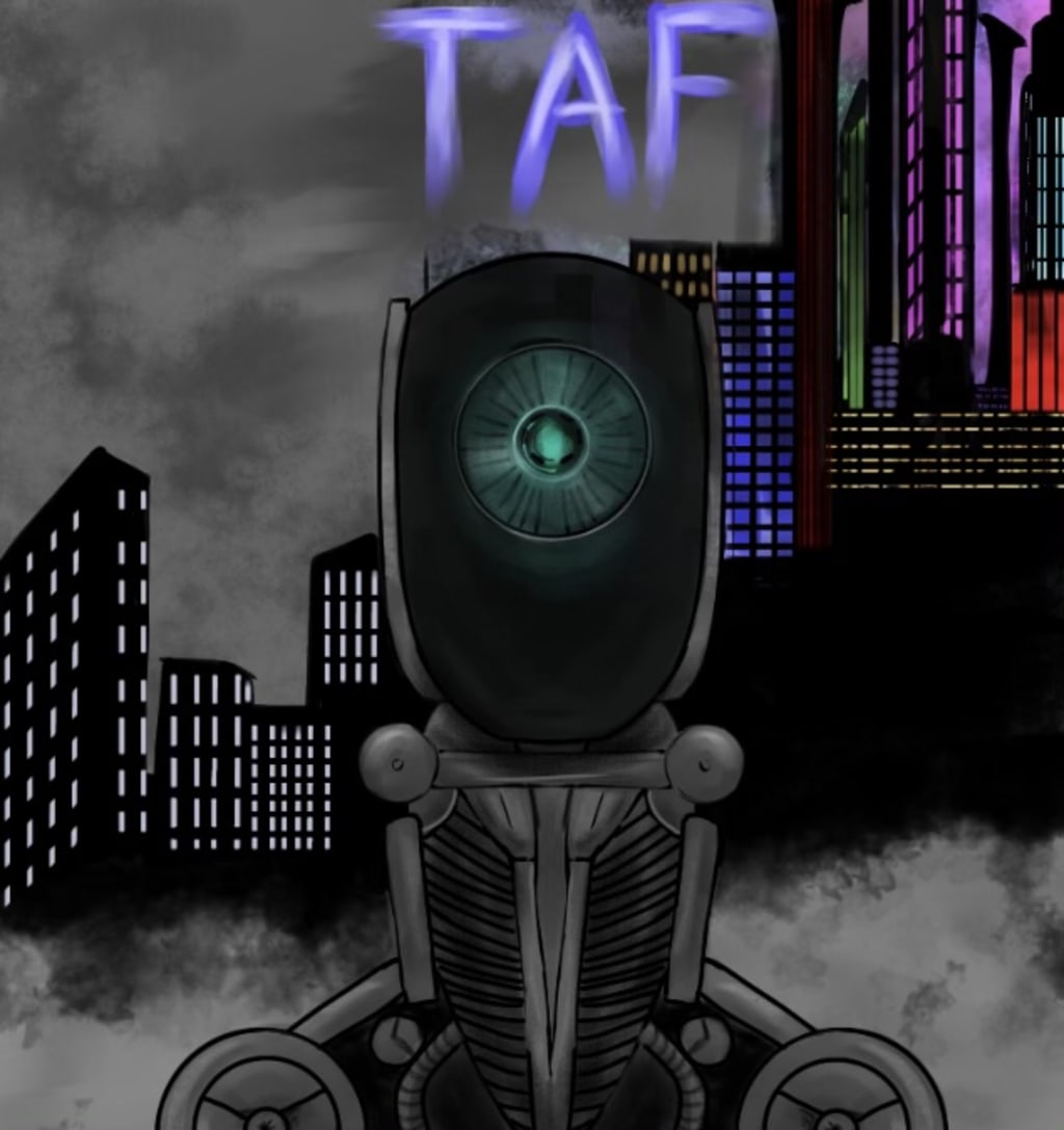 A blue light glows from a dark corner of the room, it's not well lit due to the fires from earlier shorting the panels. It's only a matter of time before the executives scramble from their comfortable offices above. Nick figures he only has mere minutes before they come. Before they found out their R&D budget went towards an android Nick had built.