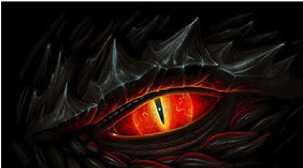 We all looked over the side of the basket just in time to see the wall of rock around the object disintegrate and drop into the current of the underground river. Then, with another horrendous roar, a creature of myth, of countless nightmares, scrambled from its tear in the rock wall and glared up at us with eyes that glowed red with fury.