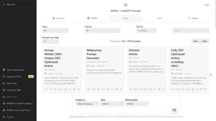 The long-awaited release of AIPRM for ChatGPT is an extension for Chrome that can help you take advantage of polished prompts and apply them to your daily tasks. Considering that they play an important role in determining the types and quality of the responses you get, it is safe to say that the power of ChatGPT ultimately lies in the prompts you use. As you can see in the numerous videos and tutorials out there, a well-crafted prompt enables the AI model to dig deep into a topic and provide the exact type of information you need.
