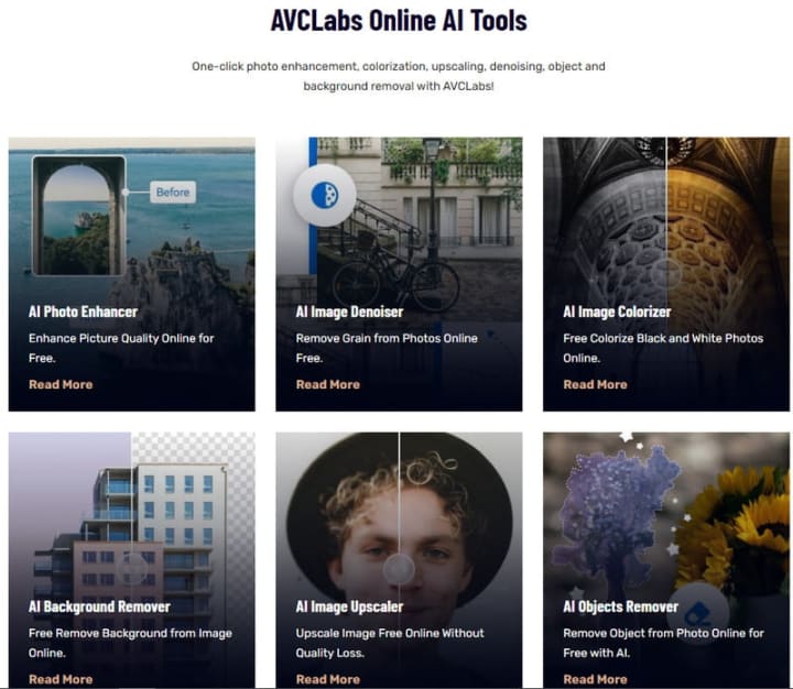 If you are not working on a regular computer, AVCLabs also has an option for you. It provides a set of online tools that allows users to upscale images, remove/change the background, denoise, remove unwanted objects, generate images from text, etc. I like the platform because each new user will automatically receive 13 free credits. Compared to Bigjpg, it offers more features beyond upscaling.
