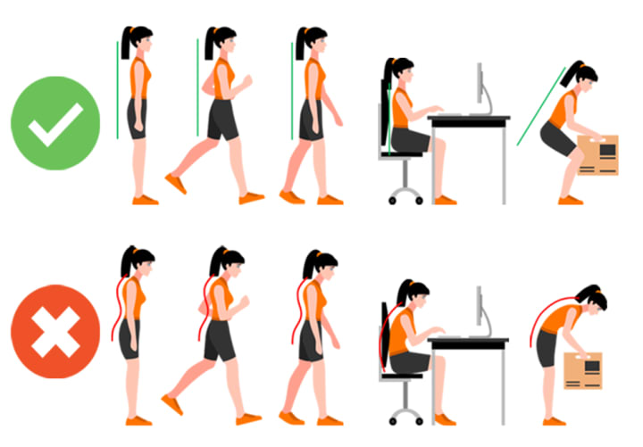 Maintaining a good posture: Sit and stand up straight with your shoulders back and your feet flat on the ground.