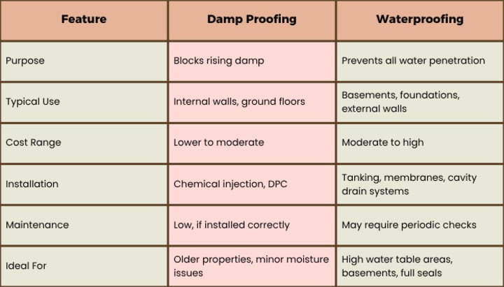 Damp Proofing vs Waterproofing: Side-by-Side Comparison