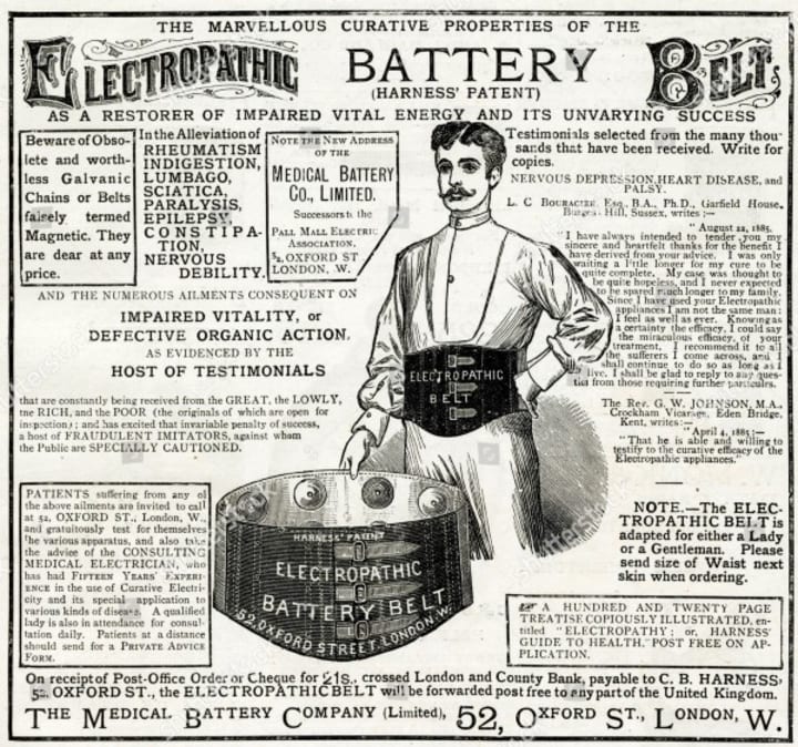 Quack doctors and false advertisements: how the discovery of electricity made its way to Victorian fashion.