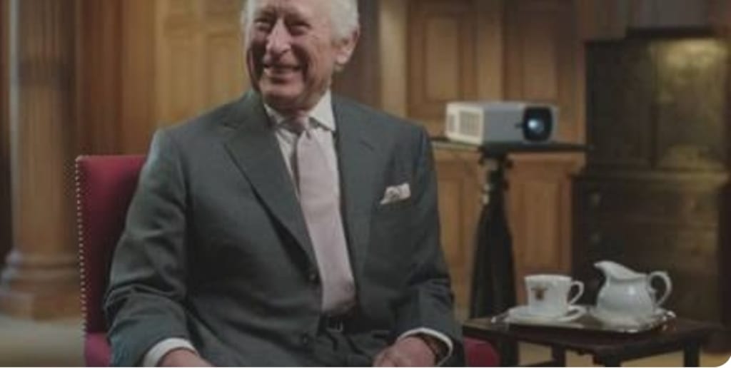 King Charles serves as both narrator and subject. His presence is understated, and he rarely appears in a traditional authoritative role. Instead, he is presented as a guide, sharing observations and reflections.