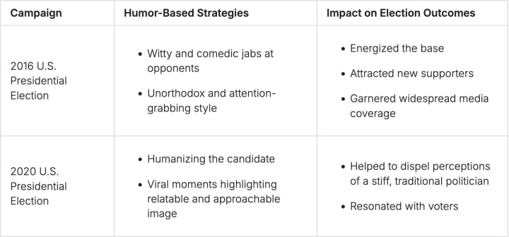 In politics, humor has become a key tool for connecting with voters and changing election results. Successful campaigns show how humor can make a big difference.