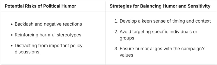 Good political humor needs a deep understanding of the audience and the situation. Successful candidates know how to be funny and still be respectful.