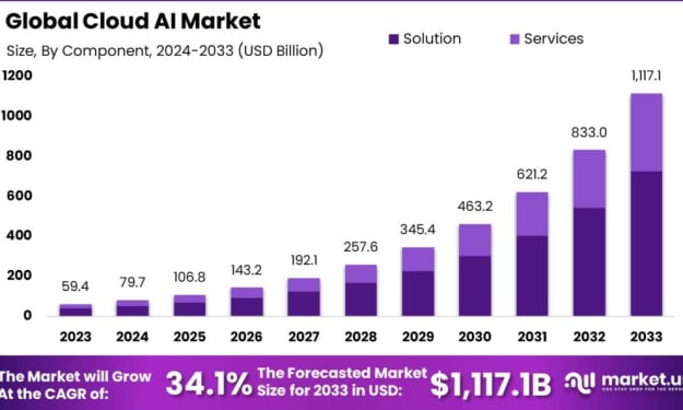 The Cloud AI Market is experiencing a remarkable transformation as it merges the capabilities of artificial intelligence (AI) with cloud computing. This integration allows businesses to harness the power of AI through cloud platforms, making sophisticated technology more accessible and scalable than ever before.As businesses continue to seek innovative ways to leverage data and improve their operations, the Cloud AI Market is becoming a crucial player in driving technological progress.The Global Cloud AI Market size is expected to be worth around USD 1,117.1 Billion By 2033, from USD 59.4 Billion in 2023, growing at a CAGR of 34.1% during the forecast period from 2024 to 2033.