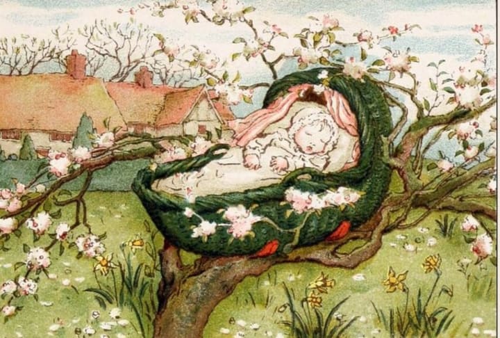This nursery rhyme is downright chilling. A baby is in a cradle, and the cradle is not placed in a safe place on the ground. Instead, it is put on a treetop. When the wind blows, the bough breaks, the cradle falls, baby and all.