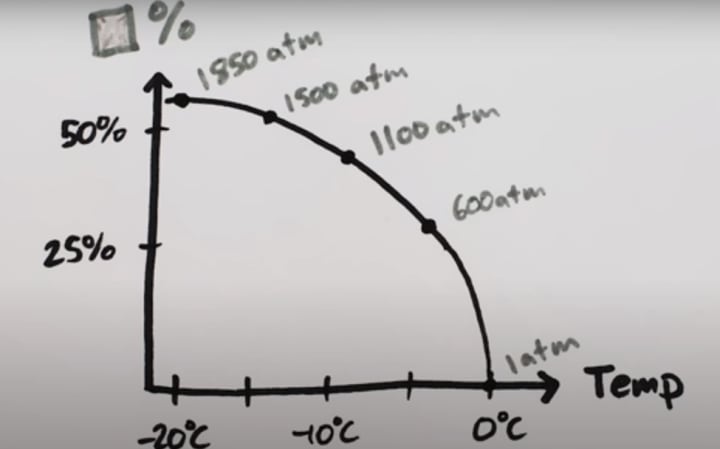 This graph displays the ratio of ice to liquid water as a set volume of water is cooled to various degrees. Whether the container ever totally freezes to ice is debatable. The remaining liquid water can, however, freeze into a distinct phase of ice, known as ice III, when the temperature is low enough and the pressure is high enough, as shown by the phase diagram once more. Additionally, when it freezes, ice III shrinks and gets denser, freeing up more space and allowing the entire container to solidify, though some of it will still be ice Ih, our typical ice, and some will be ice III. Therefore, the water phase is not as irrational as it turns out.