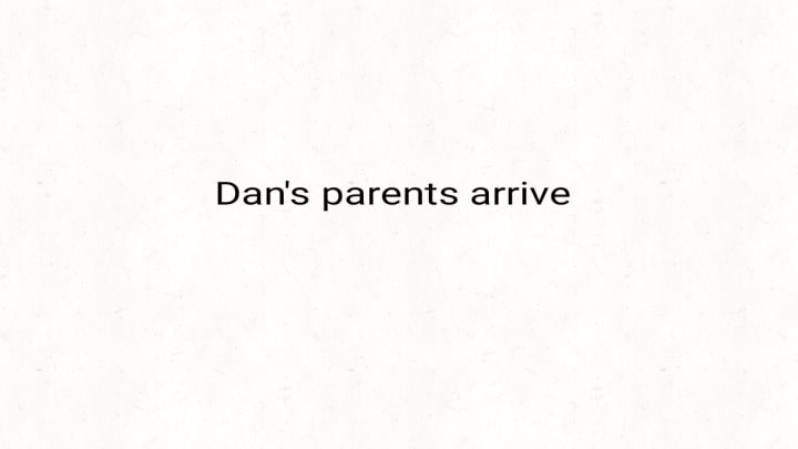 In the image above it says Dan's parents arrive. This is when the party begins!