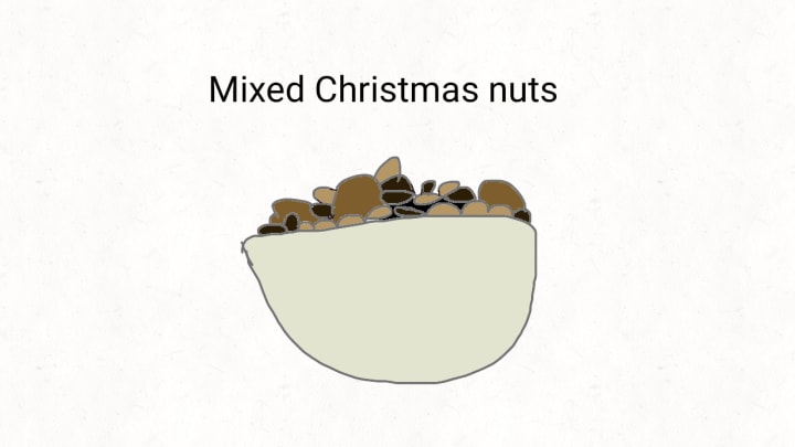 Christmas nuts mixed. There are walnuts, brazil nuts, cashew nuts and peanuts.