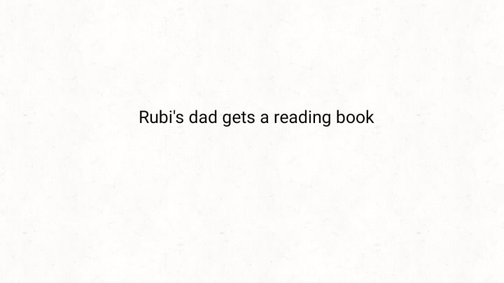 The present for Rubi's dad is a reading book, he likes reading while sitting on his armchair at home.