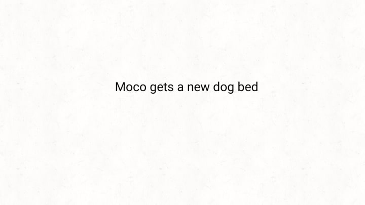 A big new dog bed for Moco! He is so over excited for a bed that is soft and comfortable when sleeping or even resting after a walk in the park or around the block.
