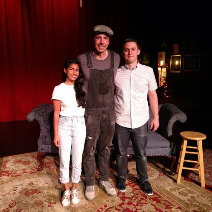 The Armchair Expert Team: Monica Padman (left), Dax Shepard (Middle), and Rob (left)
