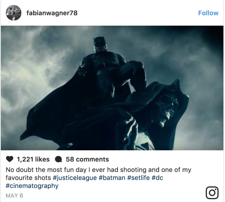 While we are sure to get some more amazing work from Wagner when Justice League hits cinemas in November, the cinematographer clearly enjoyed his time with the Caped Crusader.